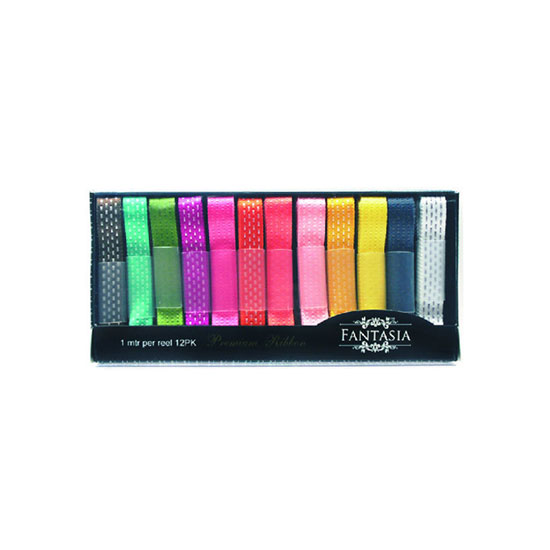 This is a ribbon set that comes with 12 pieces packaged in a window box. Each piece in a plain color has exquisite patterns. This ribbon set is ideal for assorted use purposes like making crafts, wrapping gifts and so on.