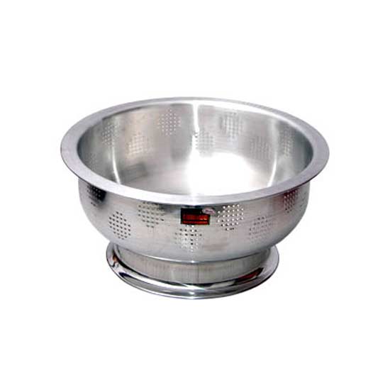 The rice container bowl features a polished surface with tiny punched holes. It is constructed of high-quality aluminum for long-lasting durability. Update your kitchenware with this metal rice container.