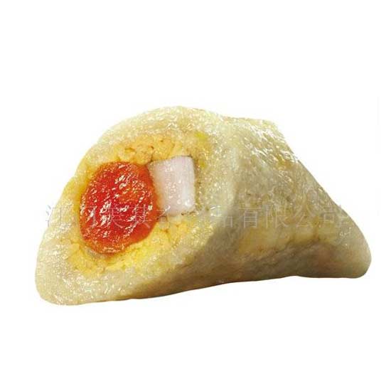 As shown is a traditional Chinese rice dumpling featuring the ingredients of glutinous rice, green bea, salted egg yolk and pork. Surely it is a must-have item for celebrating the Dragon Boat Festival.