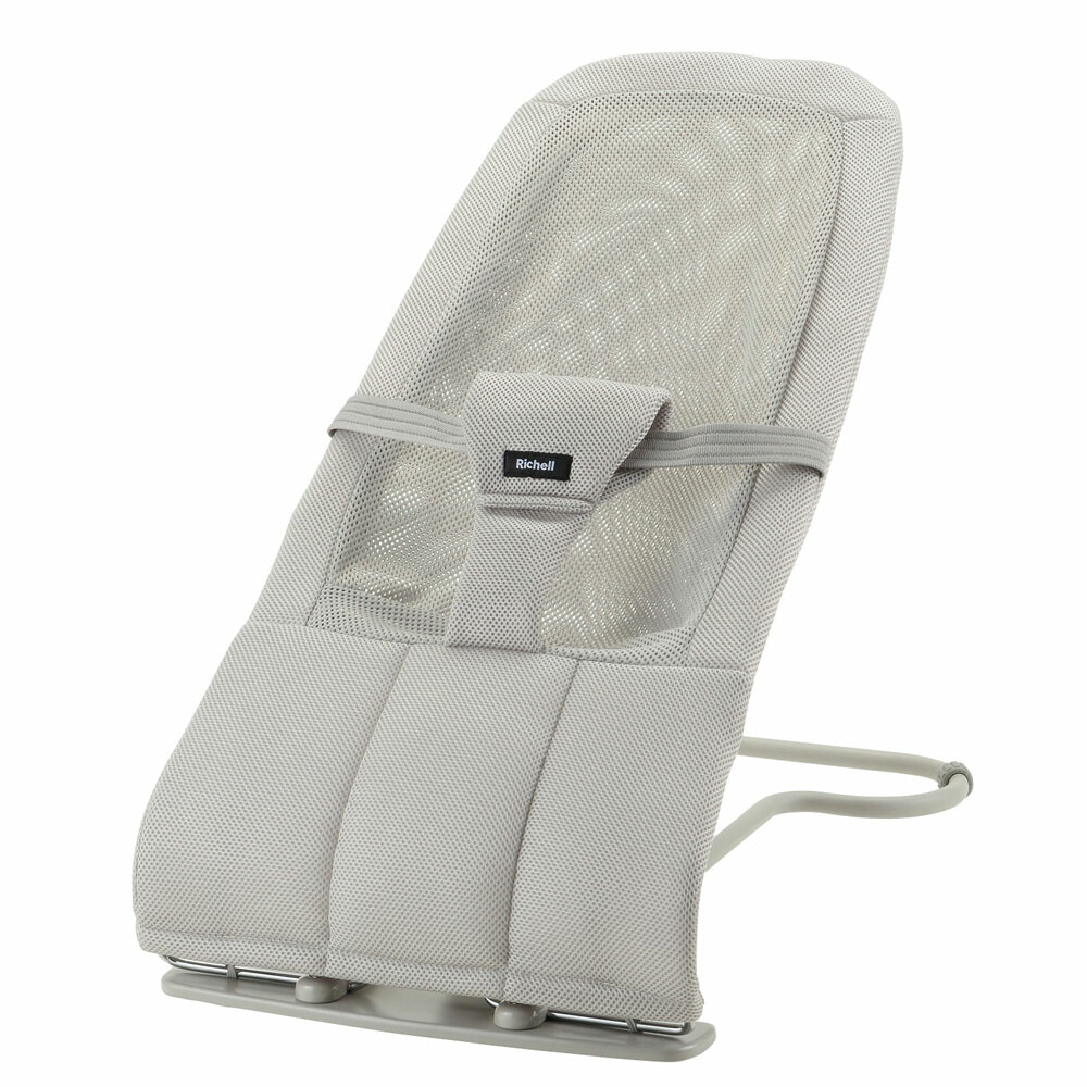 Mesh baby bouncer with natural bouncing motion, three reclining angles and a foldable design. Breathable washable seat and one-push buckle help keep babies comfortable and secure.
