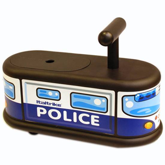 The ride-on car flaunts the appearance of a police car with a controlling handle. The plastic construction guarantees lasting durability. This ride-on car makes a great gift for your little kid.