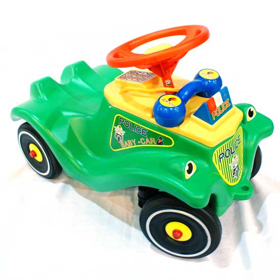 Shown here is a ride-on police car designed for kids. It is characterized by an eye-catching appearance in vibrant colors. This ride-on police car is made of ABS, PP and PE materials.