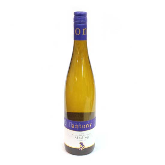 Featured is a bottle of dry Riesling 2011. It has a charming straw golden color. This refreshing wine is ideal for many occasions and can be served with various dishes.