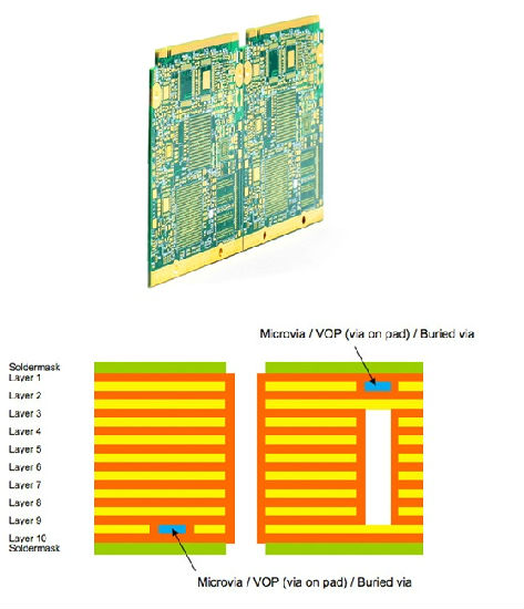 • Feature: HDI, line width/space 75um, Microvia, VIP (Via In Pad), Buried via.