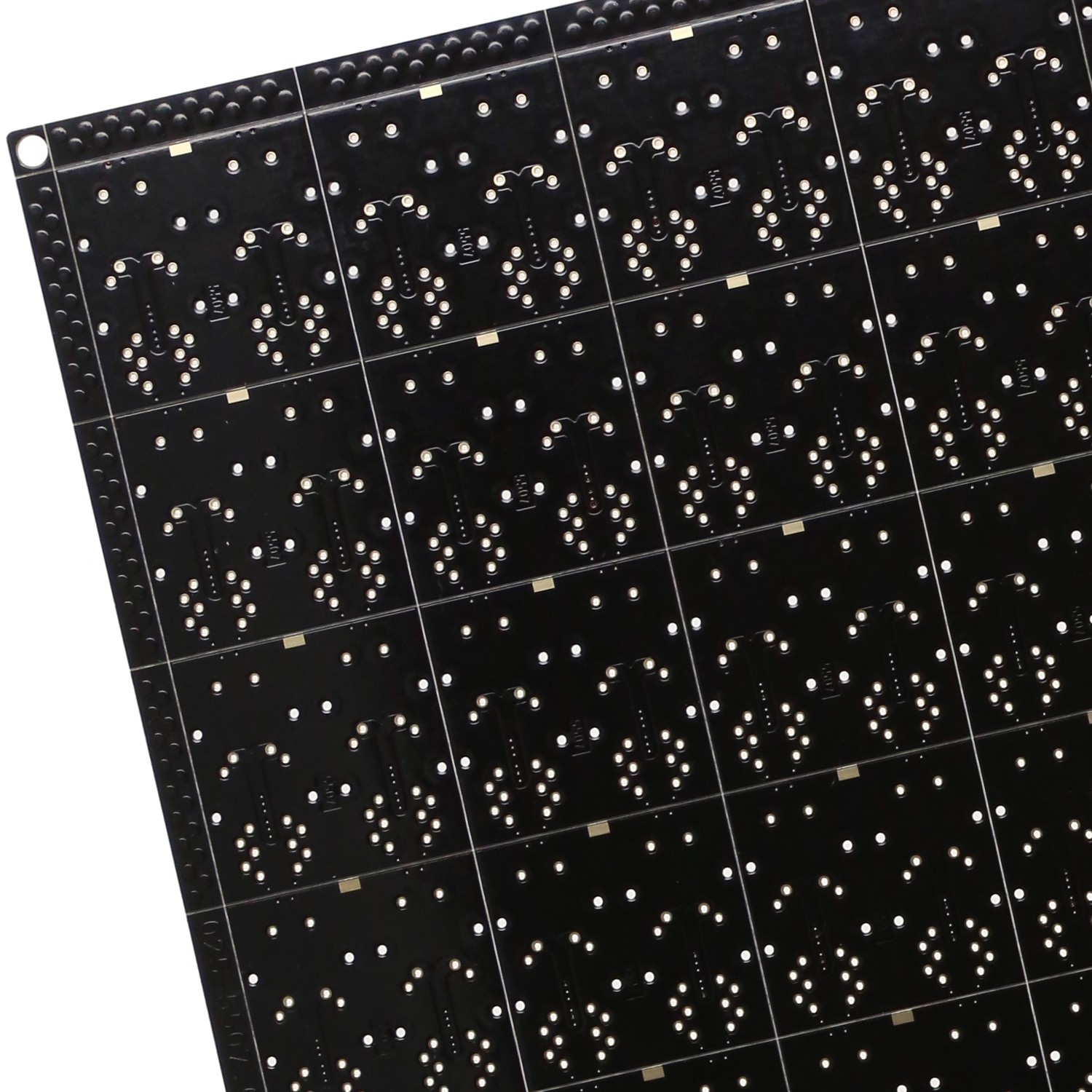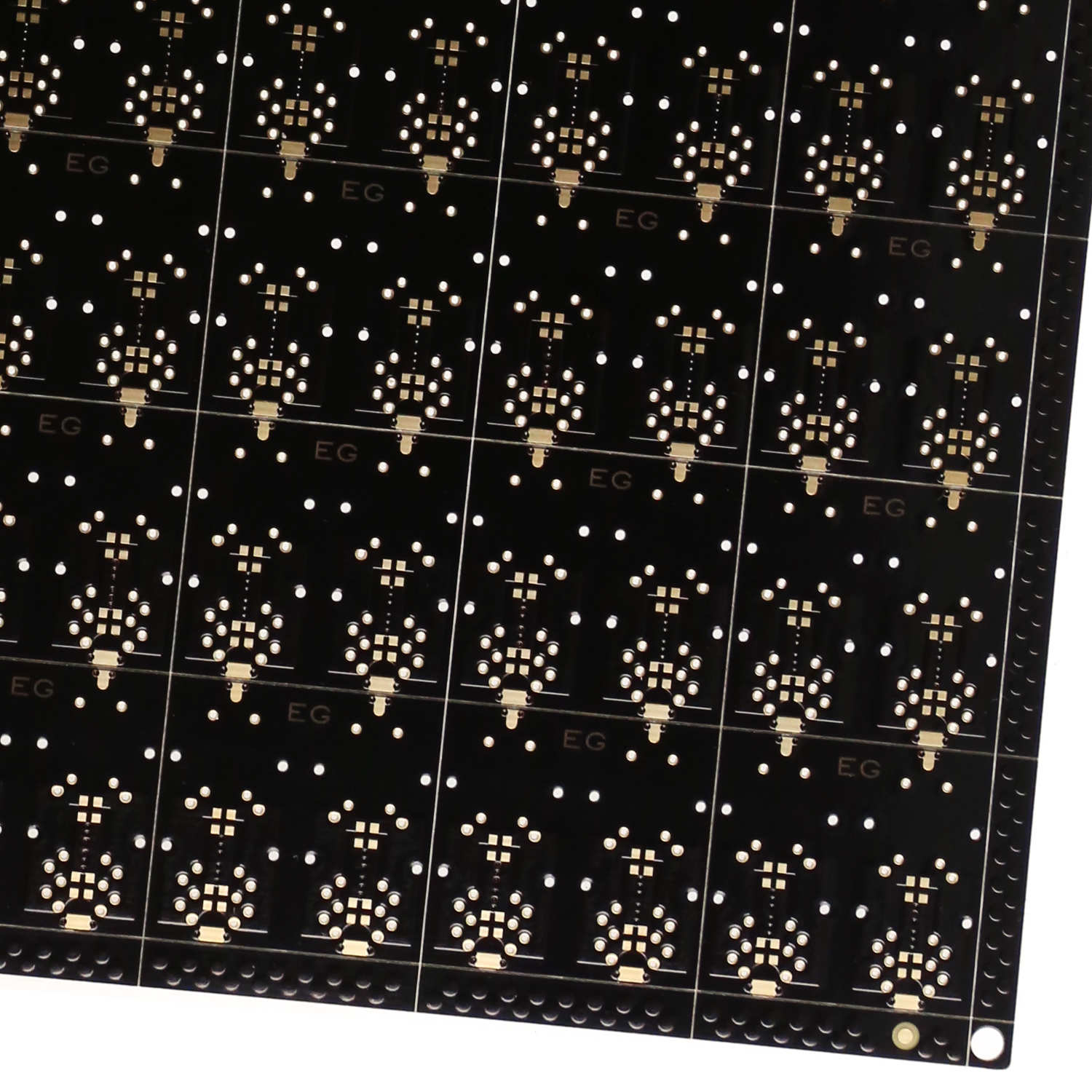 Soldered with electronic components such as transistors, resistors and circuits, this PCB depicts punched holes at corners for effortless mounting in machines. Its standard dual-layer construction further boasts immersion gold finish that guarantees a long service life.