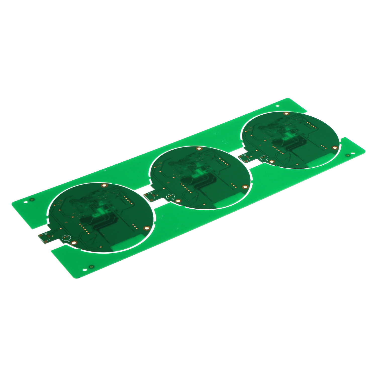 The highlighted rigid printed circuit board has a green solder mask and is finished with immersion gold. It comes in a 2-layer design and flaunts a high glass transition temperature. This rigid printed circuit board is meticulously crafted to ensure stable and efficient operation.