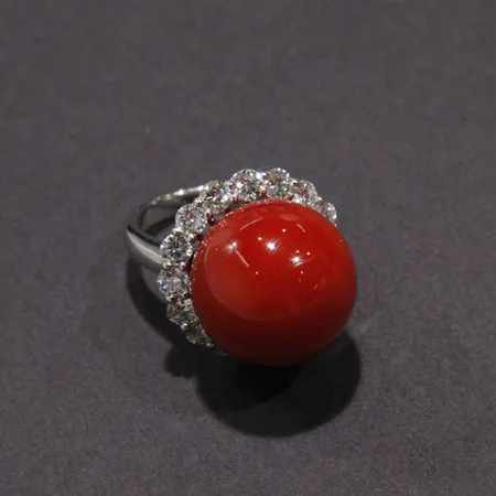 • Material: 900 platinum, coral, diamond