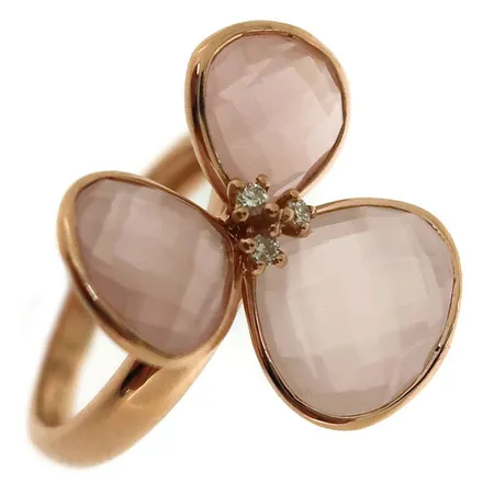 • 18K Rose Gold Rose Quartz, White Diamond ring