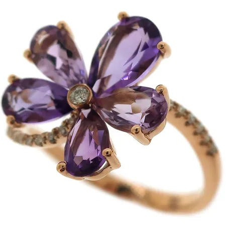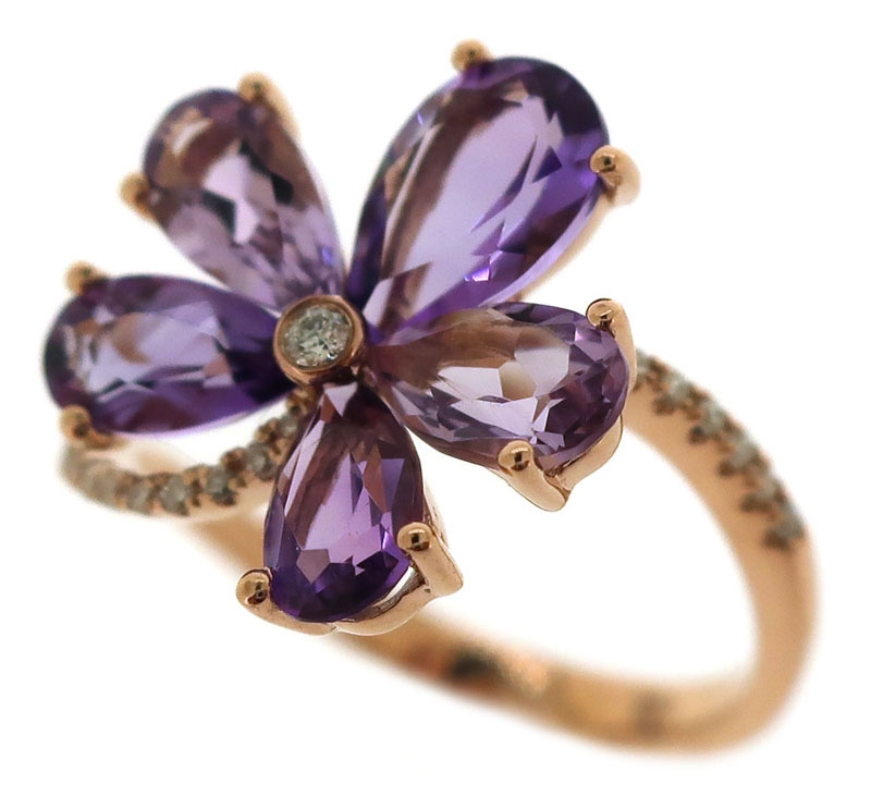 • 18K Rose Gold Pink Amethyst, Amethyst, White Diamond ring