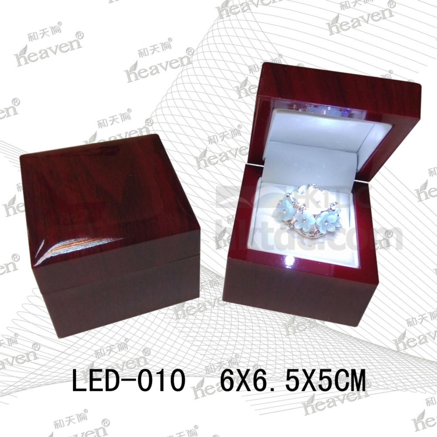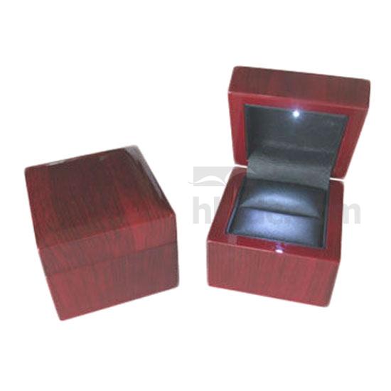 This is a ring box with a classic and elegant design. It comes in red with a cube-shaped body. This jewelry box is fitted with an LED light inside for added utility.