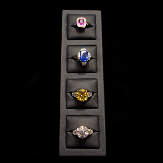 - Material: yellow diamond, Burma ruby (no heat), diamond, ruby and sapphire.