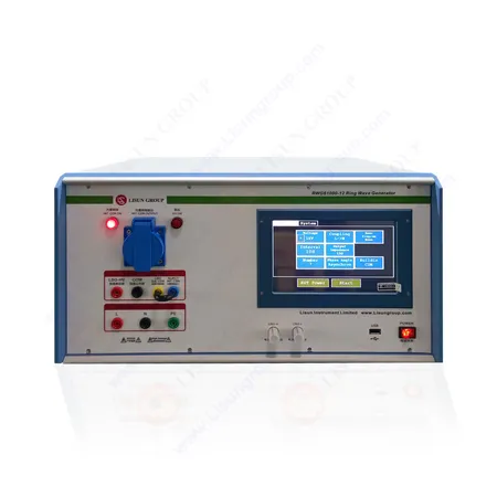Ring wave test generator is designed according to the IEC61000-4-12, EN61000-4-12, ANSI-C62-41 and GB/T17626.12. This instrument is used for the simulative electrical network, the power supply of the reactive load and the control line switch, as well as sensing the ring wave of the low voltage cables terminal equipment caused by the disconnection of the power circuit, fault and insulation breakdown or lightning stroke. The RWG61000-12 series products have LCD display in both English and Chinese.