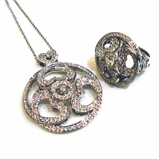 • Featured here is a jewellery set, which consists of a pendant and a ring.