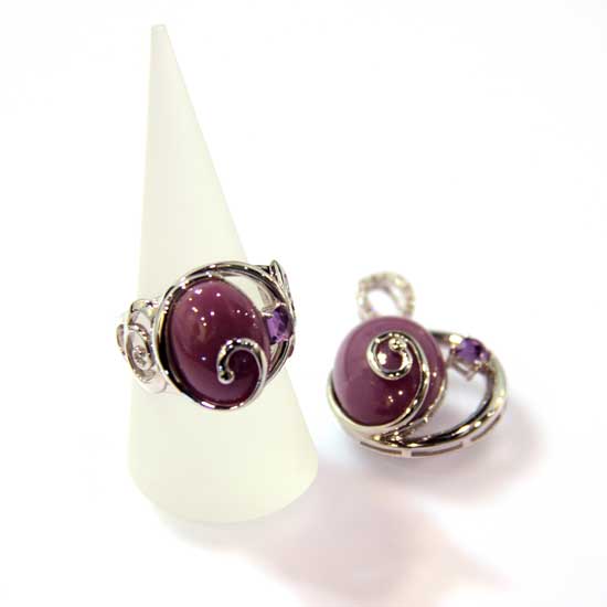 The beauty of this ring and pendant set lies in the African phosphosiderite. The gem is in a beautiful purple color with a smooth surface. It matches with the silver settings perfectly for added glamour.