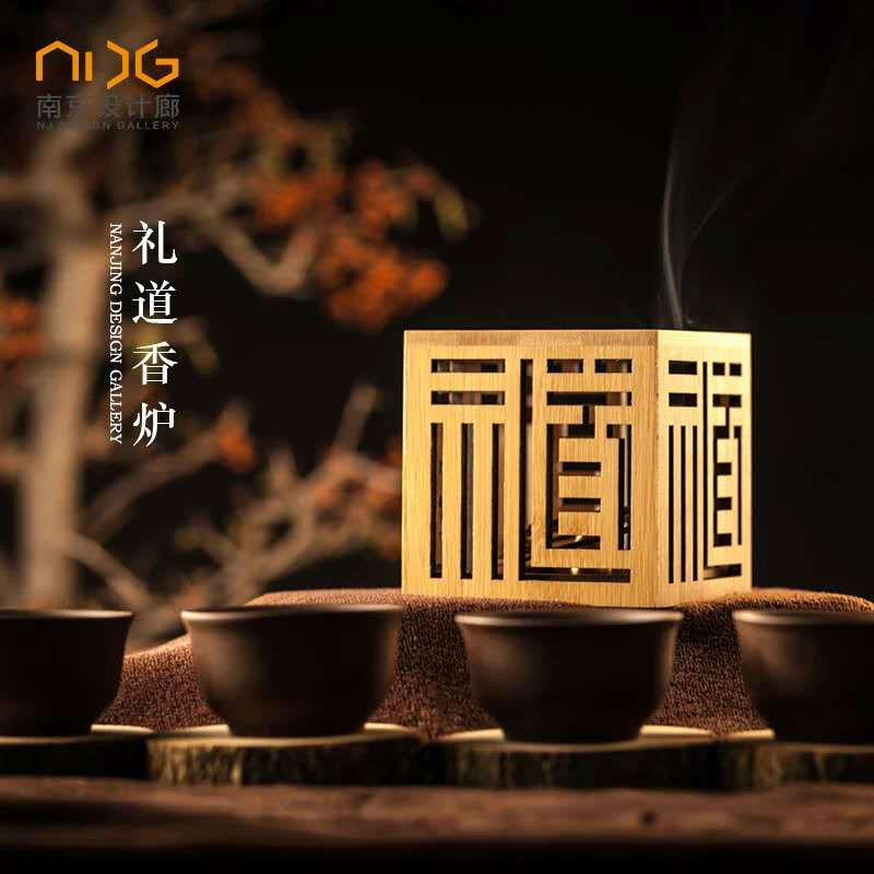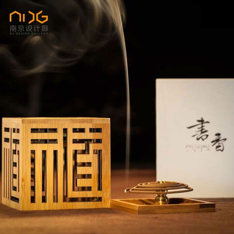 • Cube-shaped incense burner with Chinese geometric cutouts