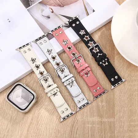 Rivet leather watch strap applicable for lady apple watch strap full series and classical watch