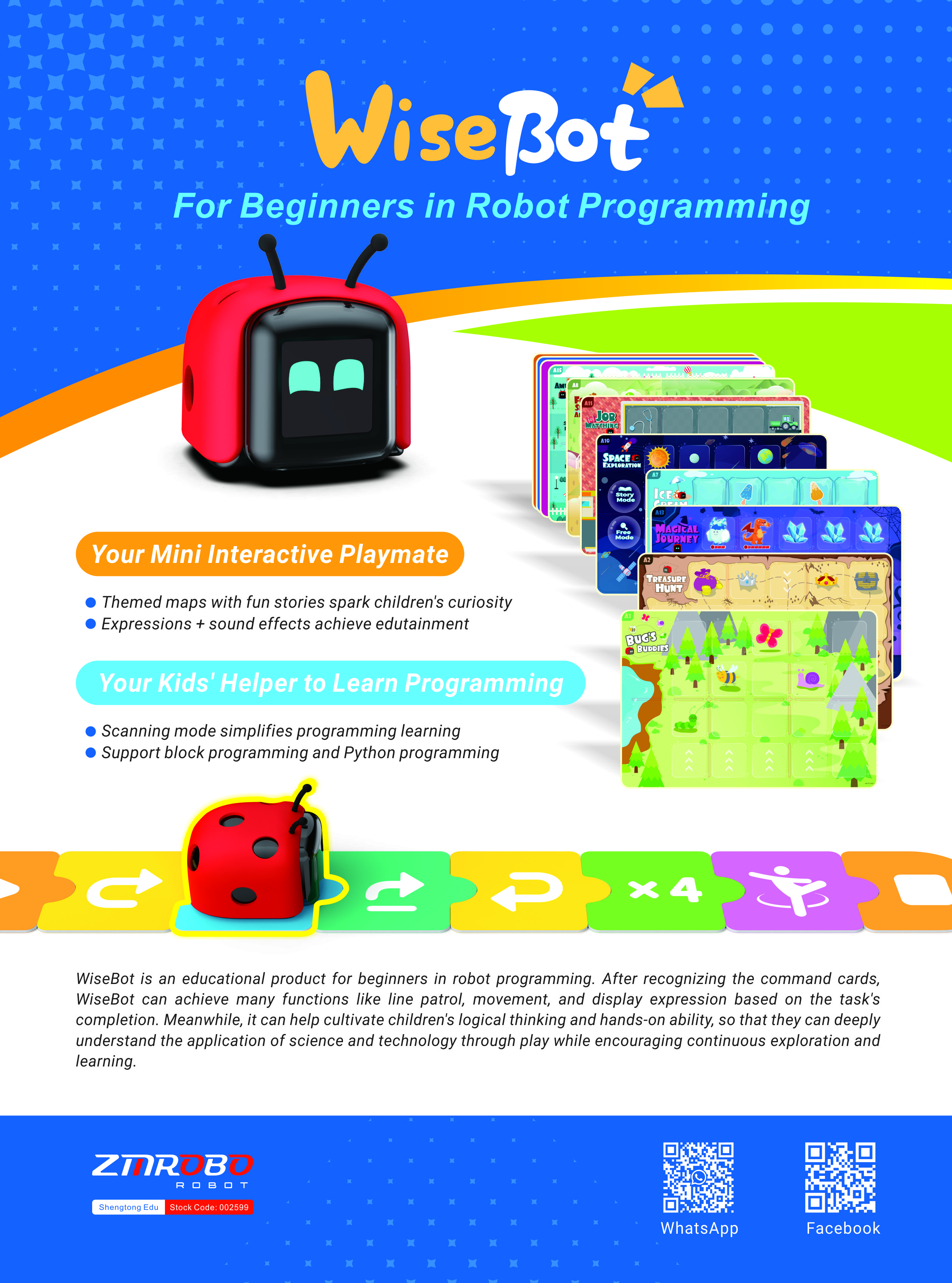 WiseBot is a programming robot for children aged 3 to 6. It uses command