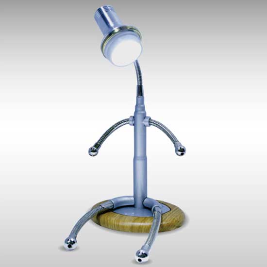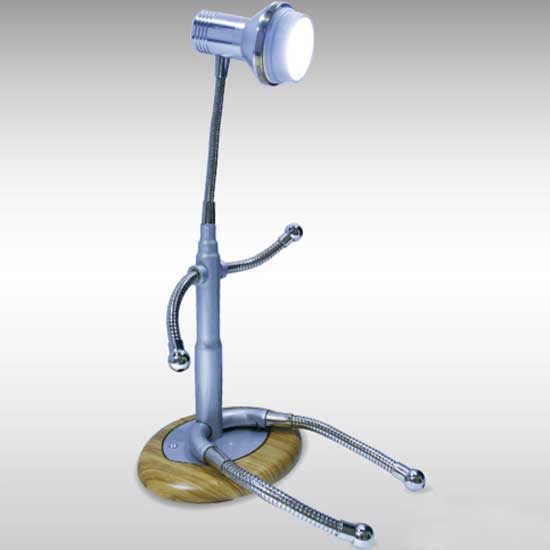 This unique desk light features the appearance of a sitting robot. The high-performance adopts ergonomic light technology to provide glare-free and stable illumination. The flexible goose neck allows easy adjustment of the beam angle.