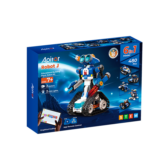 Apitor Robot J is a building set for children aged 7 and up, offering 6 unique models and integrating ScratchJr programming to inspire creativity and coding skills in a fun and engaging way.