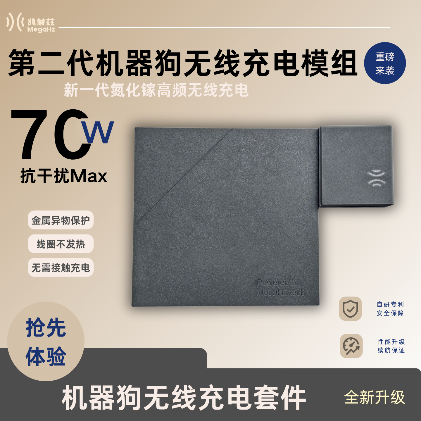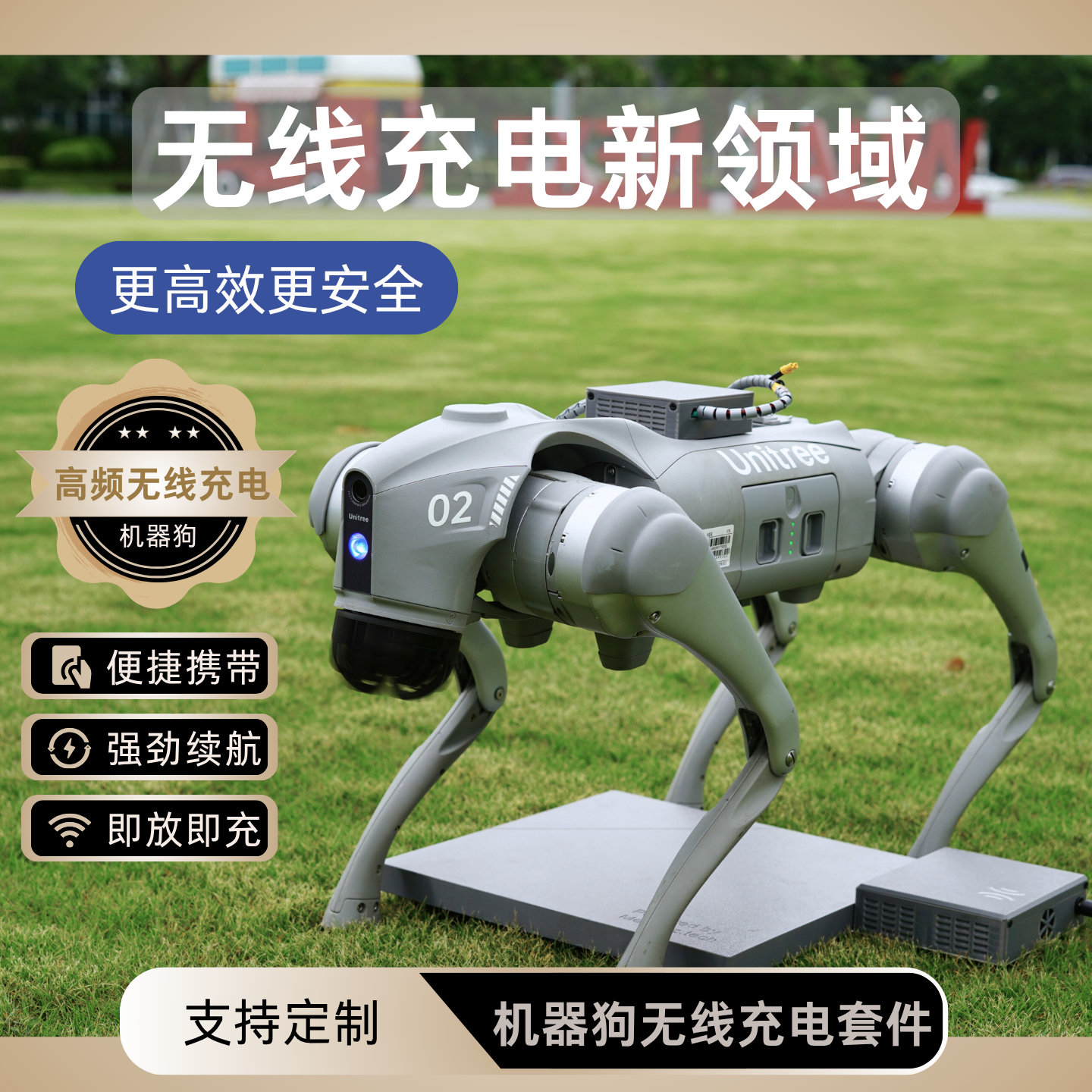 The kit provides a high charging power of up to 70W (customizable) and an extra-large offset distance of 180mm. Combined with an adaptive charging algorithm, the robotic dog can quickly recharge without precise alignment, significantly shortening the interval between two inspection tasks and ensuring non-interrupted monitoring. With an operating temperature range of -20℃ to 40℃, it serves as a reliable solution for guaranteeing task continuity in industrial, power, and other critical sectors.
