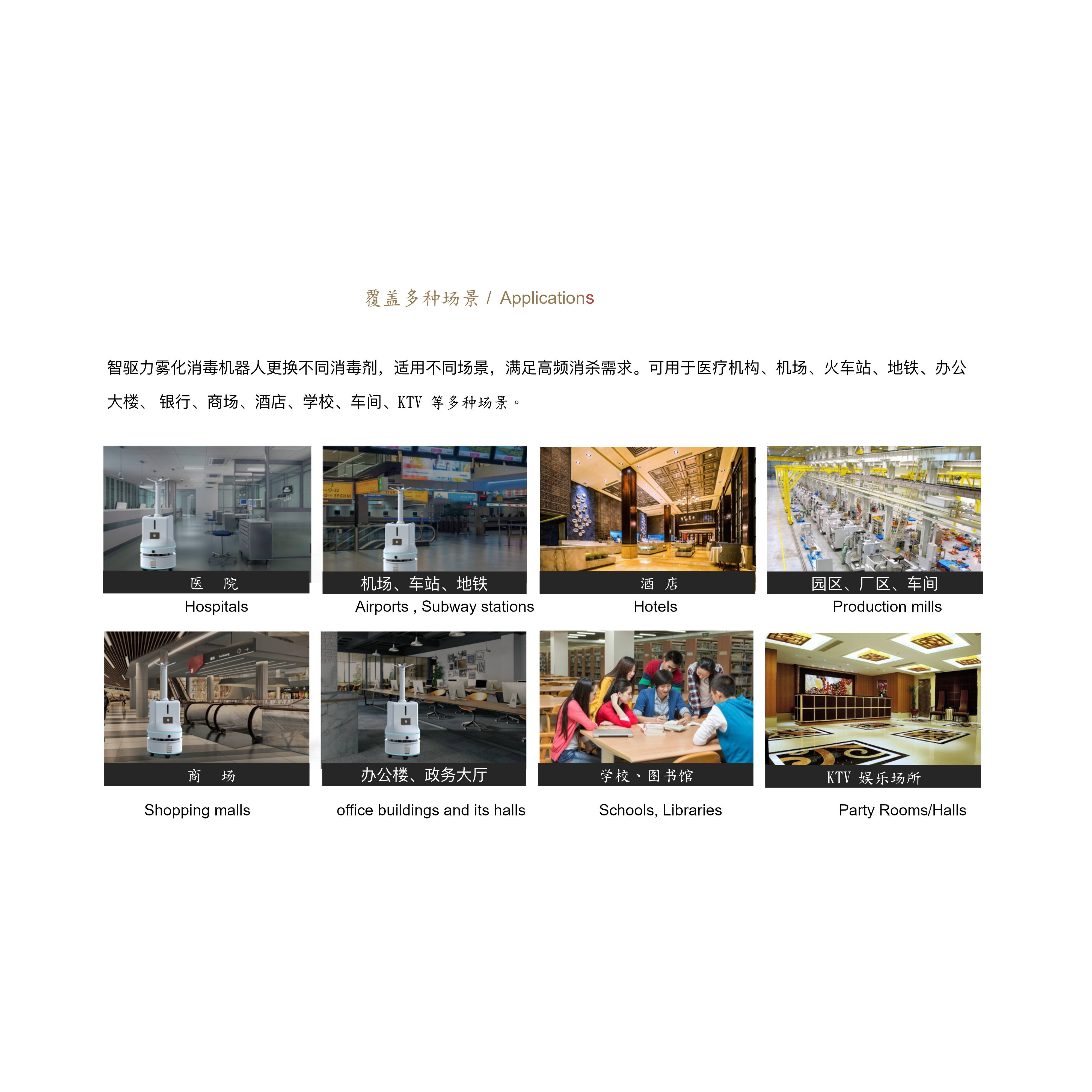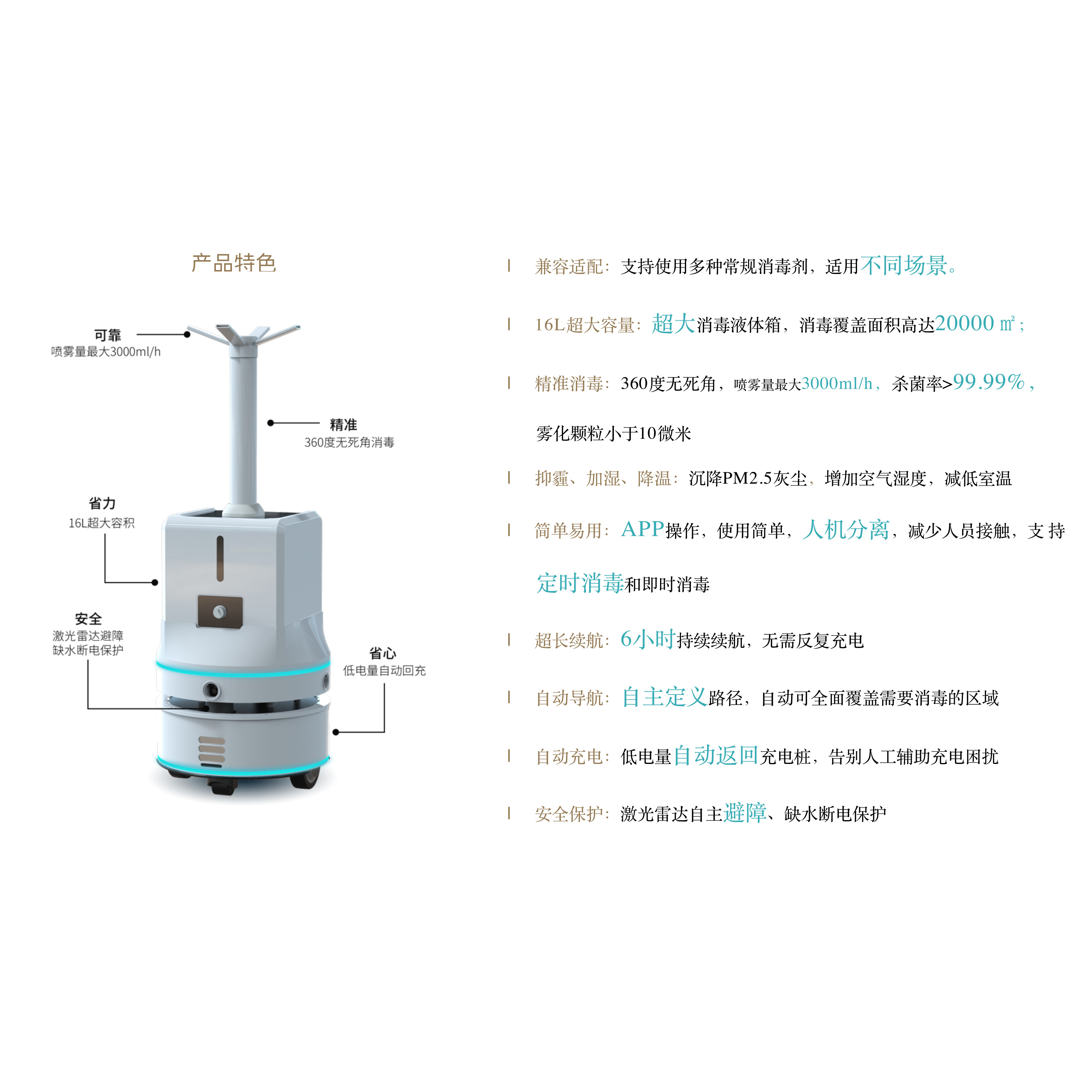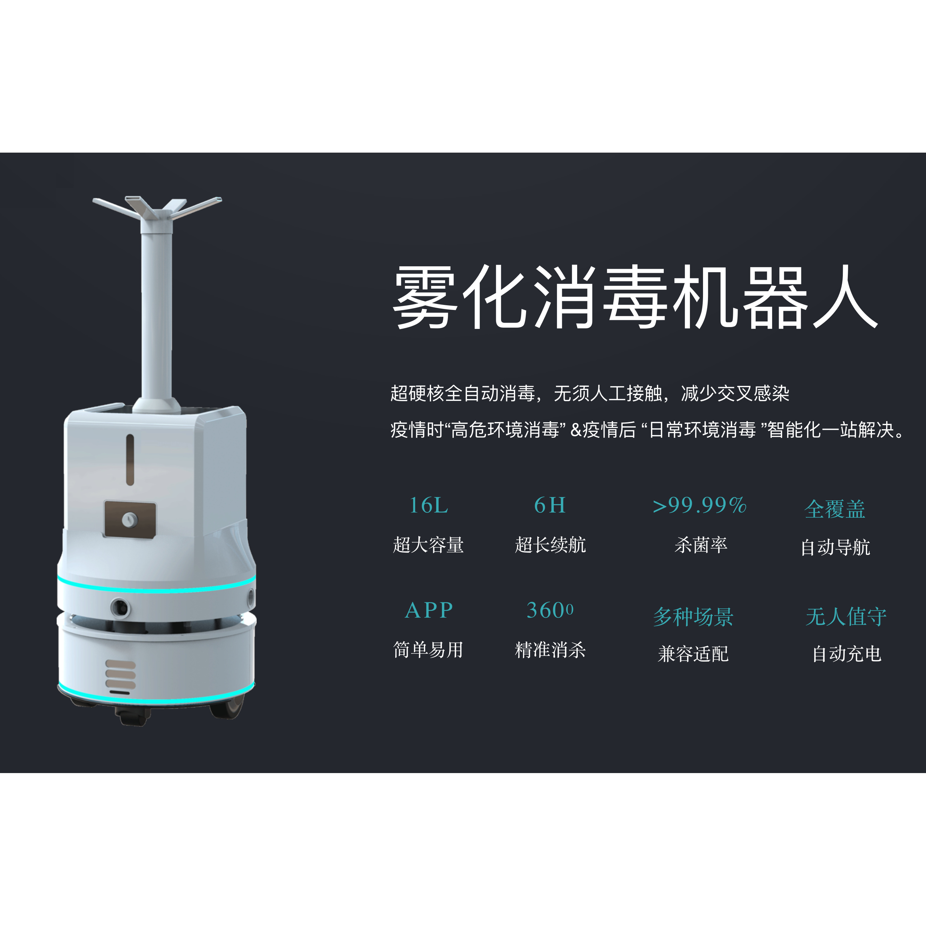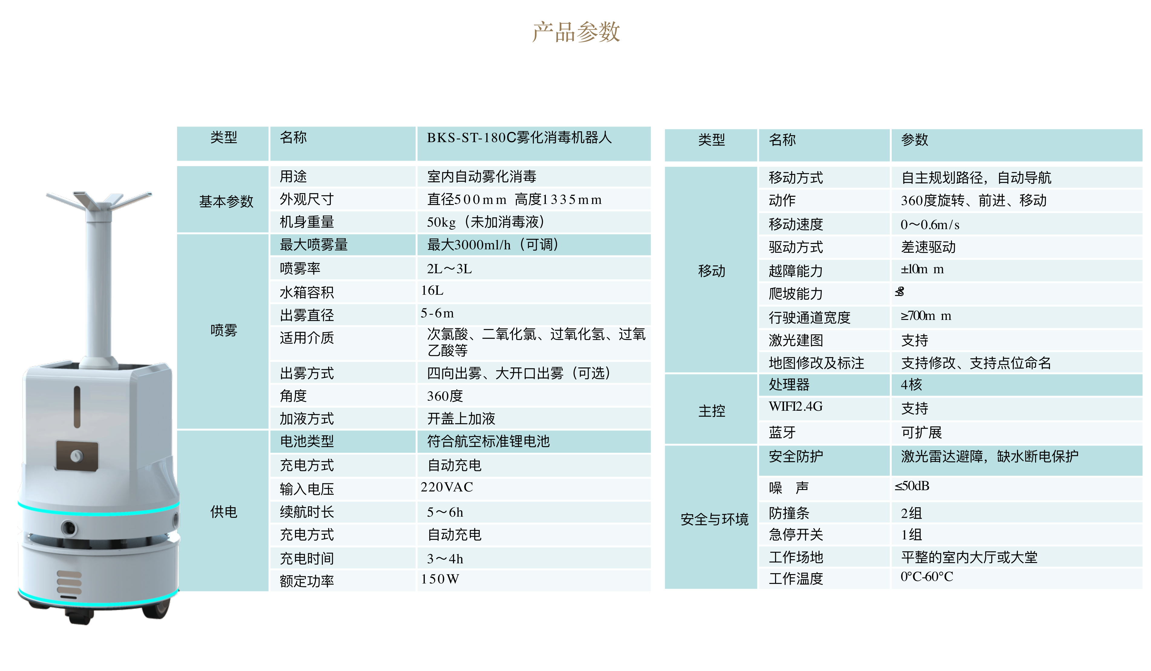 The robot of Disinfectant spray are designed for Public areas disinfection and its Atomized particles smaller than 10 micrometers.