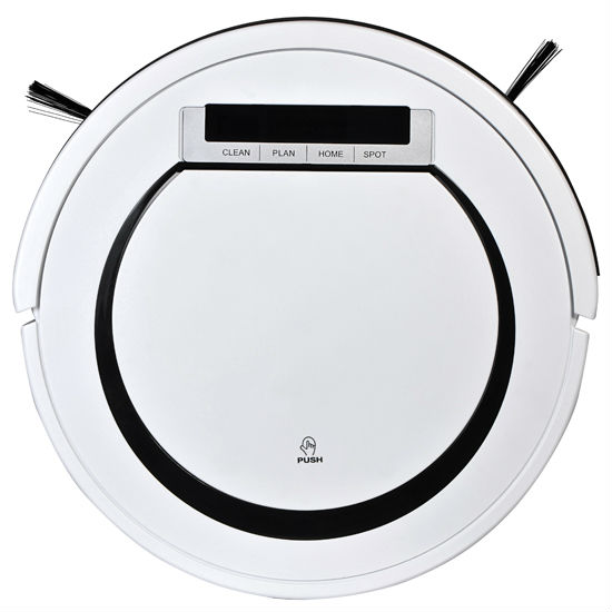 Shown here is a smart vacuum cleaner, it delivers great cleaning performance with long working hours. With only four buttons and a remote control, this helpful vacuum is very easy to operate. You will surely experience the unprecedented convenience of vacuuming and sweeping.