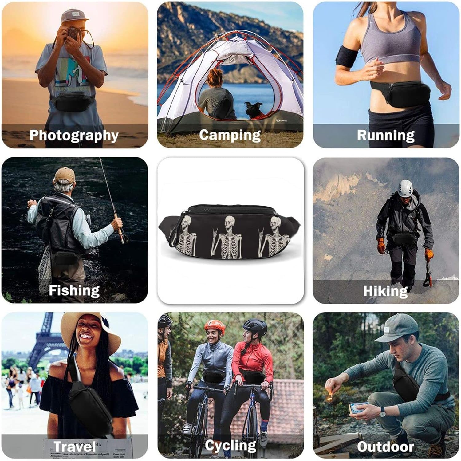 Rock And Roll Skeleton Skull Boho Hippie Fanny Pack