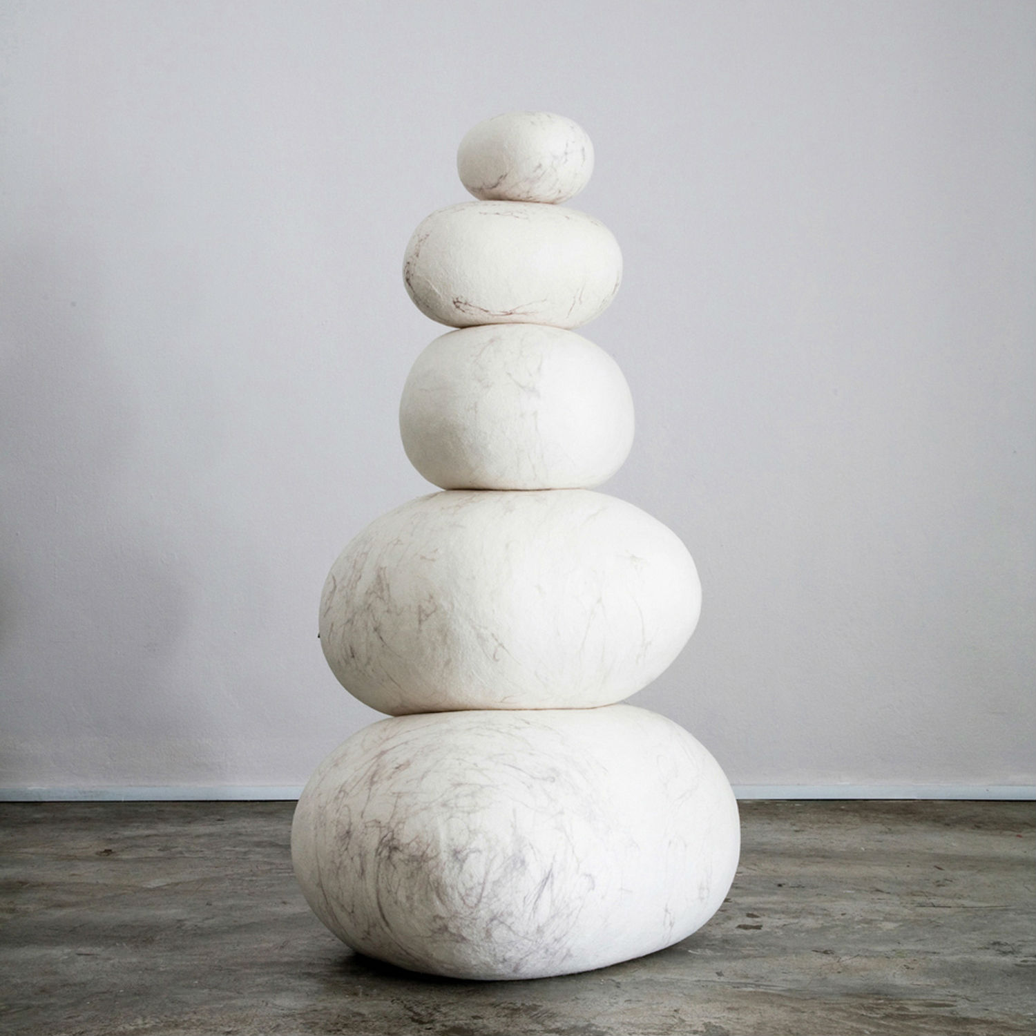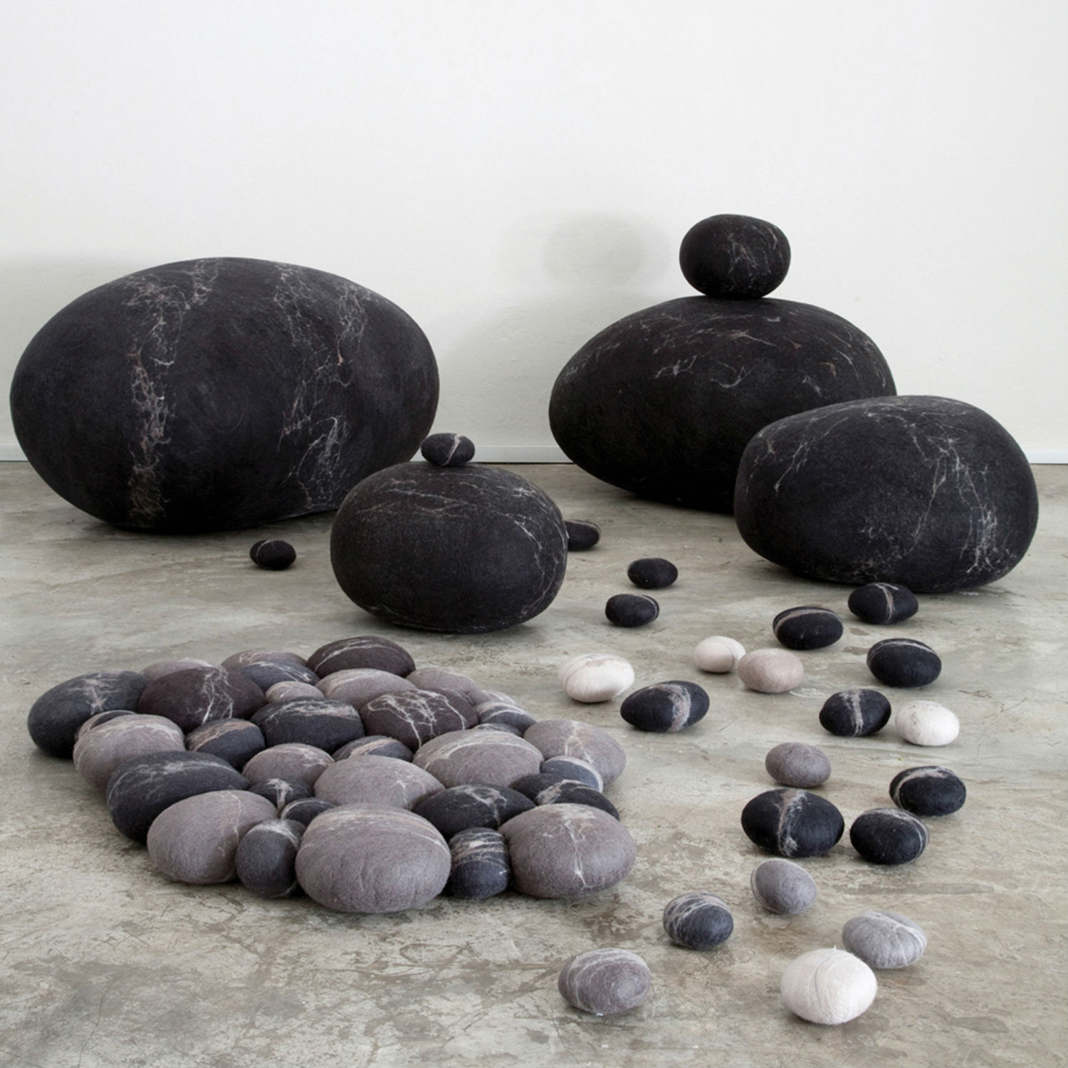These stylish cushions are inspired by nature. Shaped like rocks and boulders, they are completely hand-dyed and handmade with no stitches, with hand-felted Merino wool for a comfortable touch. These rock cushions bring a touch of serenity and the beauty of nature indoors. An ideal addition to your modern household.