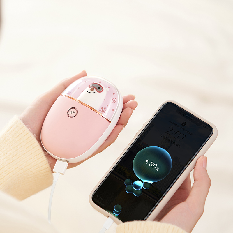 NS20 is a stylish portable ambiance lamp hand warmer, double-sided heating, delicate feel, a variety of doll optional; charged and temperature control display, a 45 degrees, 55 degrees, USB charging and discharging, built-in KC Polymer 5000mAh Battery, can be used as a mobile power supply.