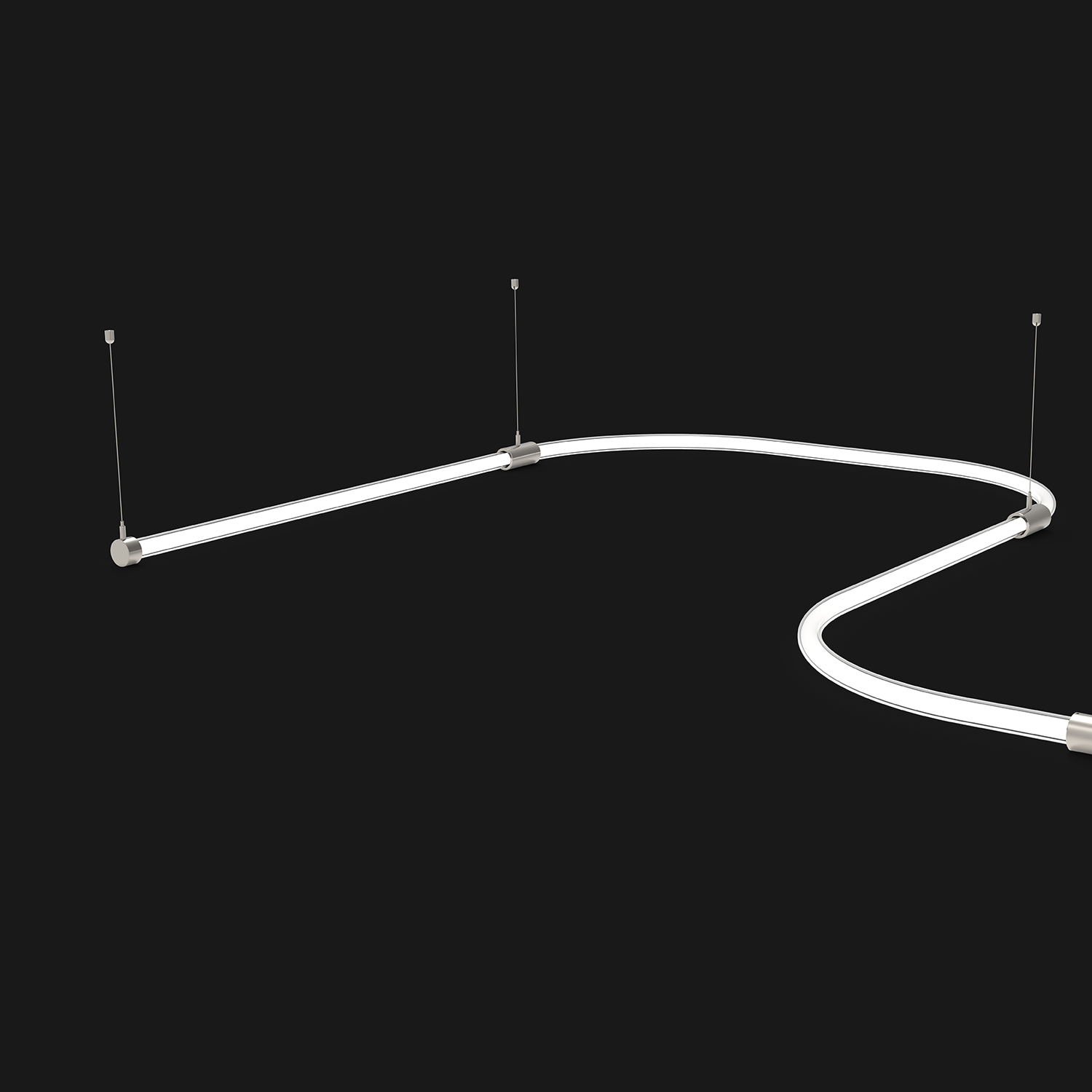 ROD 25 offers limitless creativity. ROD 25 is a system luminaire with linear or curve connecting elements that scores as a uniform and pleasant lighting system. The characteristic beam angle of 360° deliver homogeneous ambient illumination and gentle ceiling brightening. ROD 25 can be used as a pendant luminaire, or as a surface-mounted version for walls and ceilings.