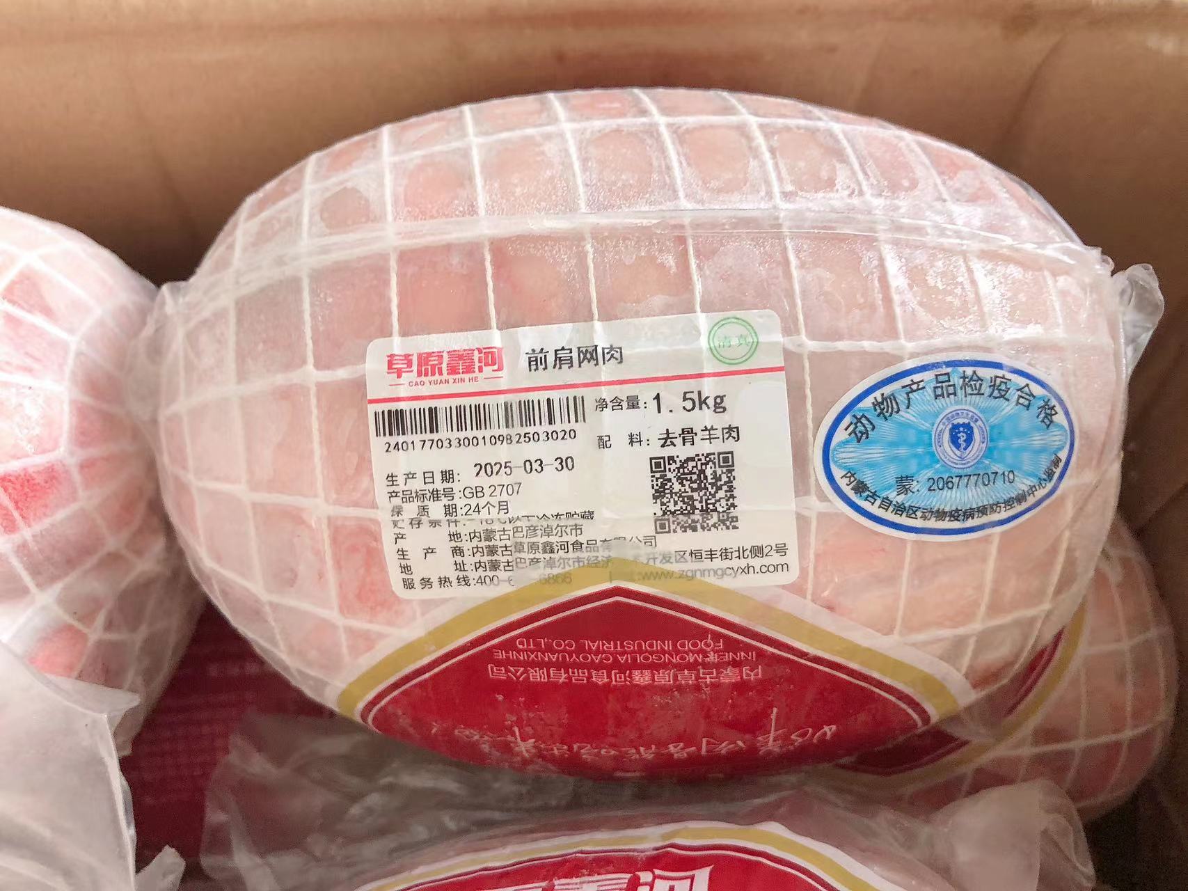 Processing technology: Selected from lamb shoulder meat, remove scapular cartilage, tendons and other impurities, and shape into rugby form with a net sleeve.