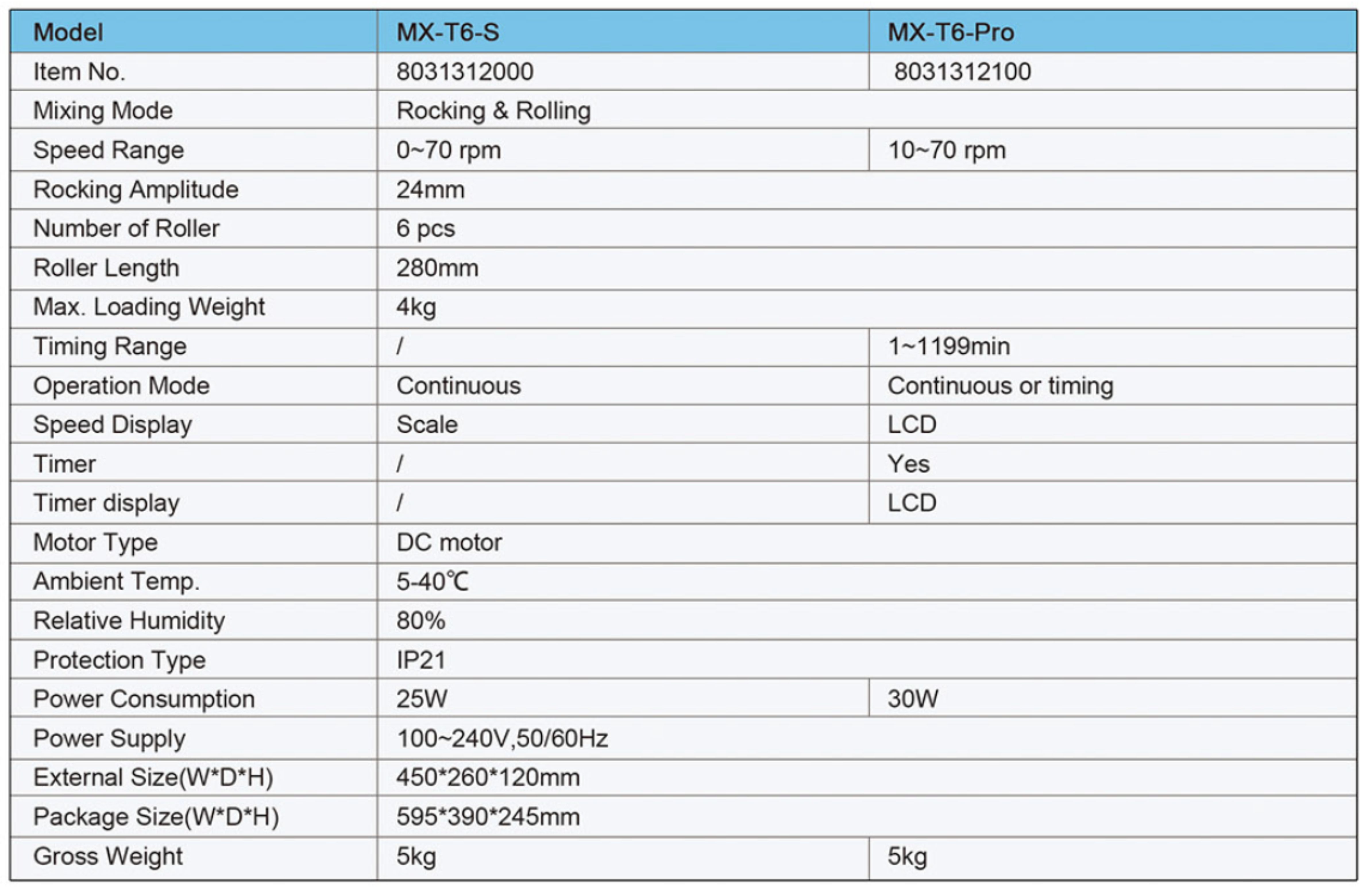 *LCD display indicates the speed and time for MX-T6-Pro.