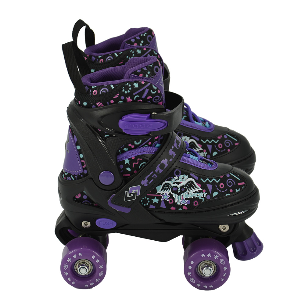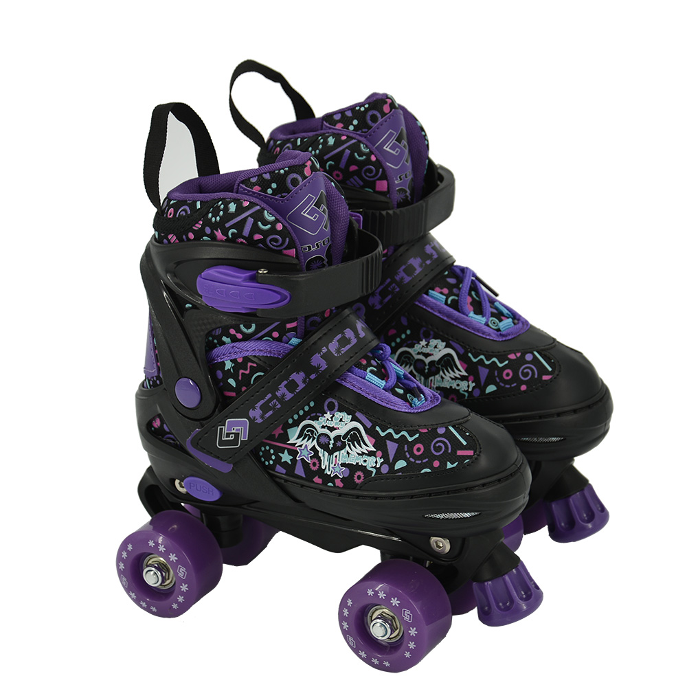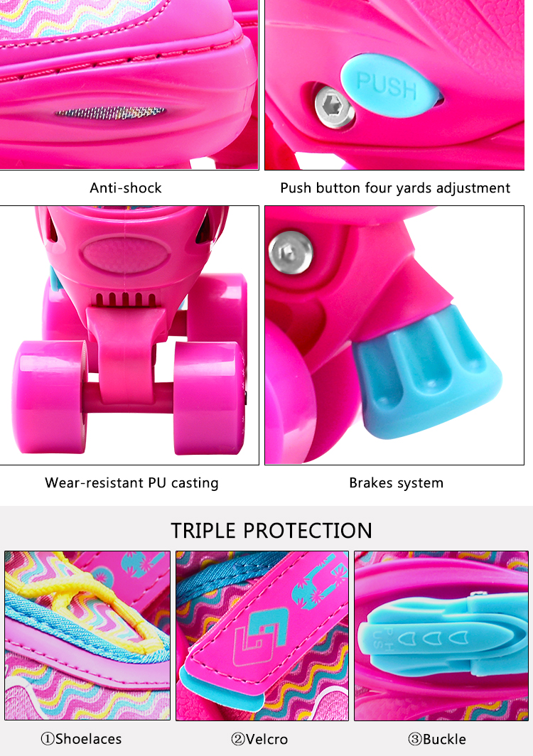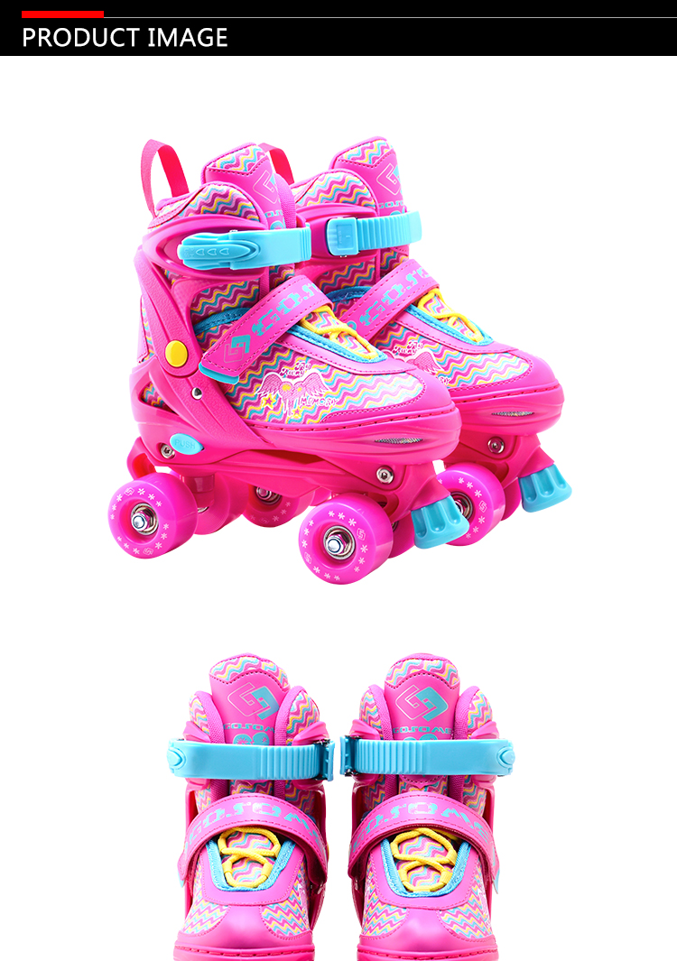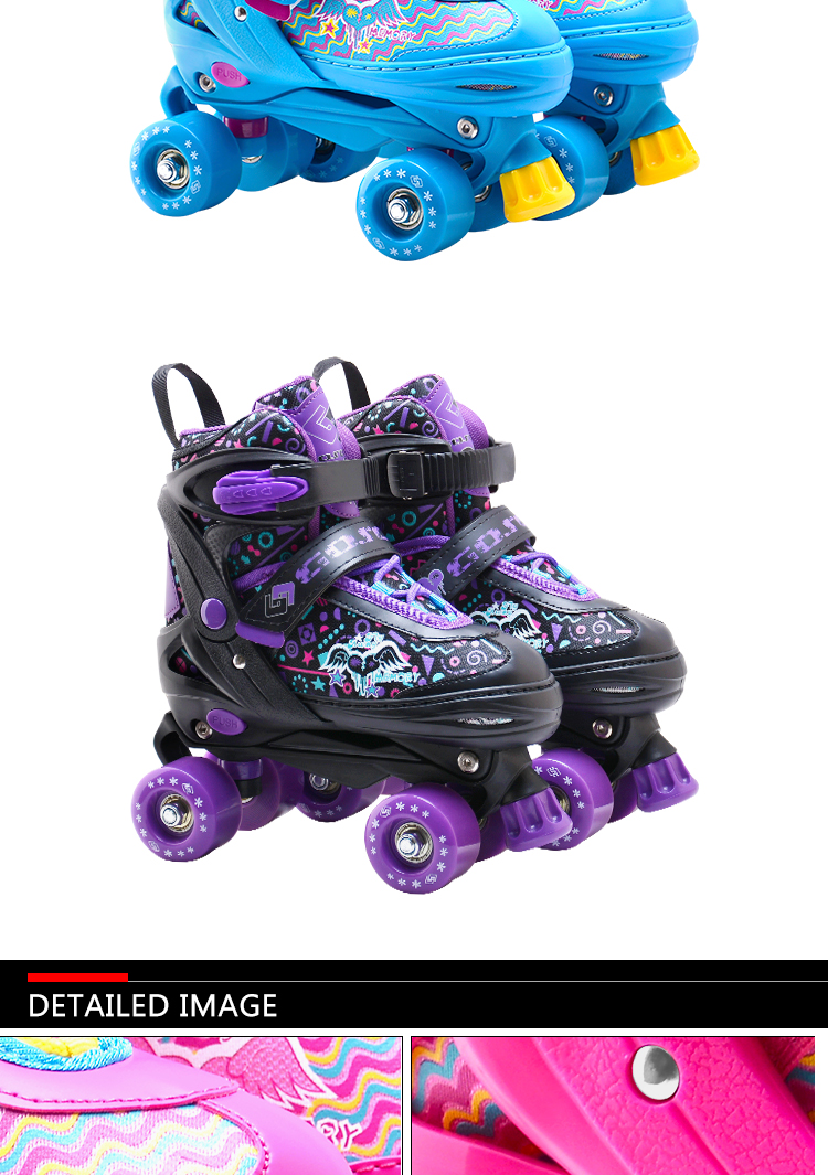 Shown here is a pair of inline skates with a protective design. The wheels are made of high-rebound PU material. This pair of inline skates is easy to adjust and comfortable to wear.