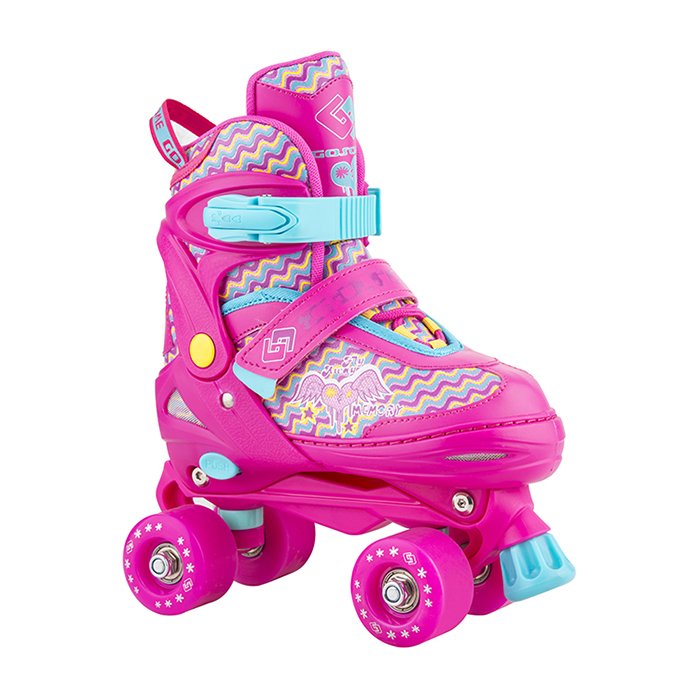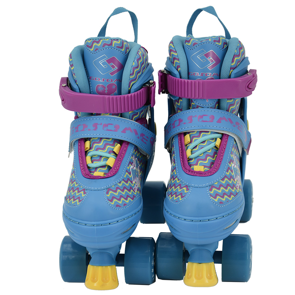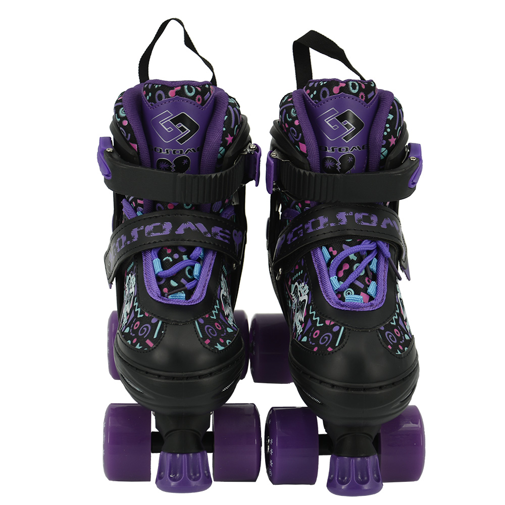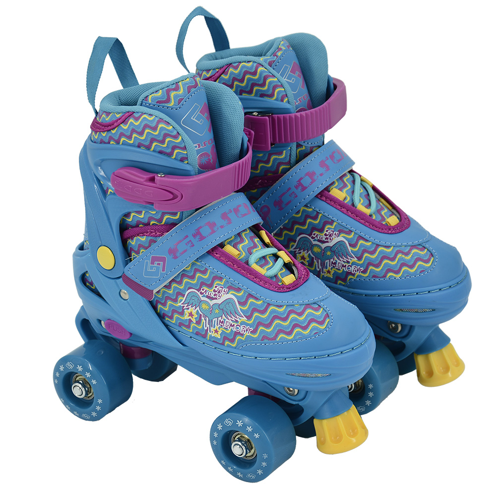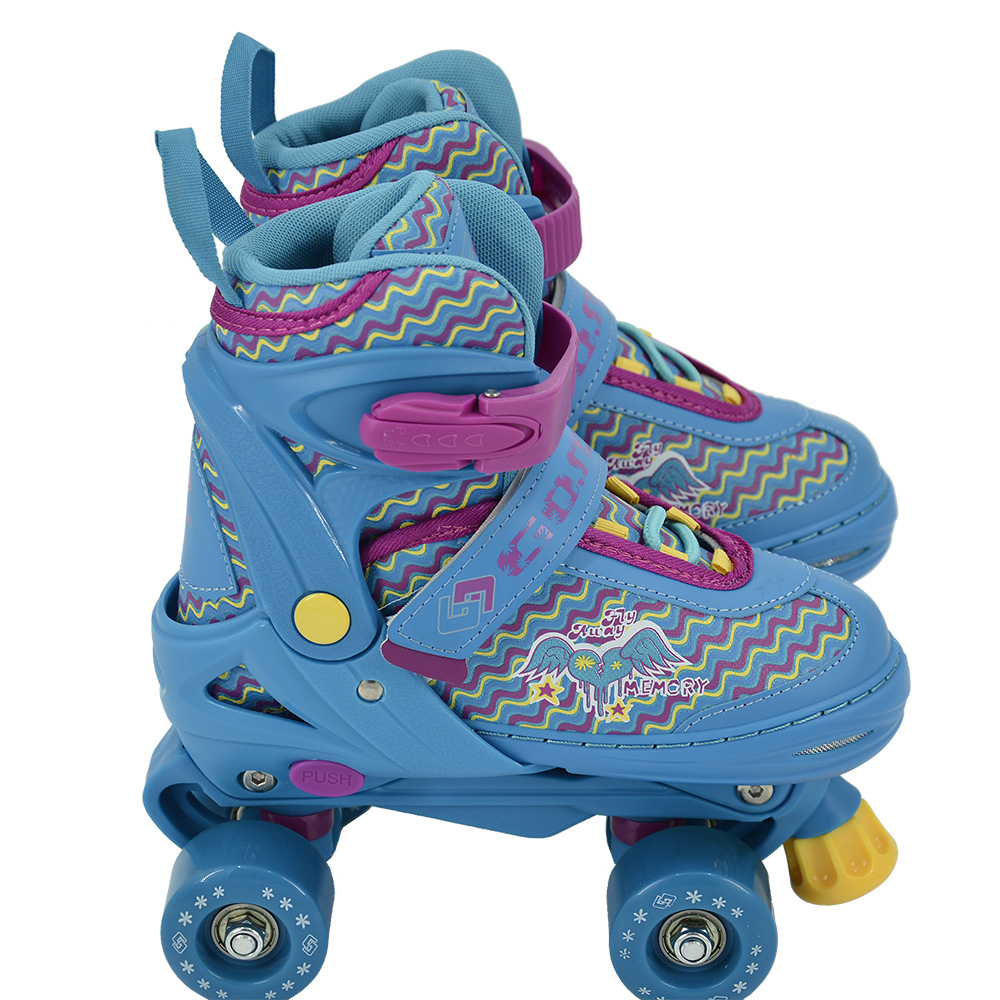 Shown here is a pair of inline skates with a protective design. The wheels are made of high-rebound PU material. This pair of inline skates is easy to adjust and comfortable to wear.