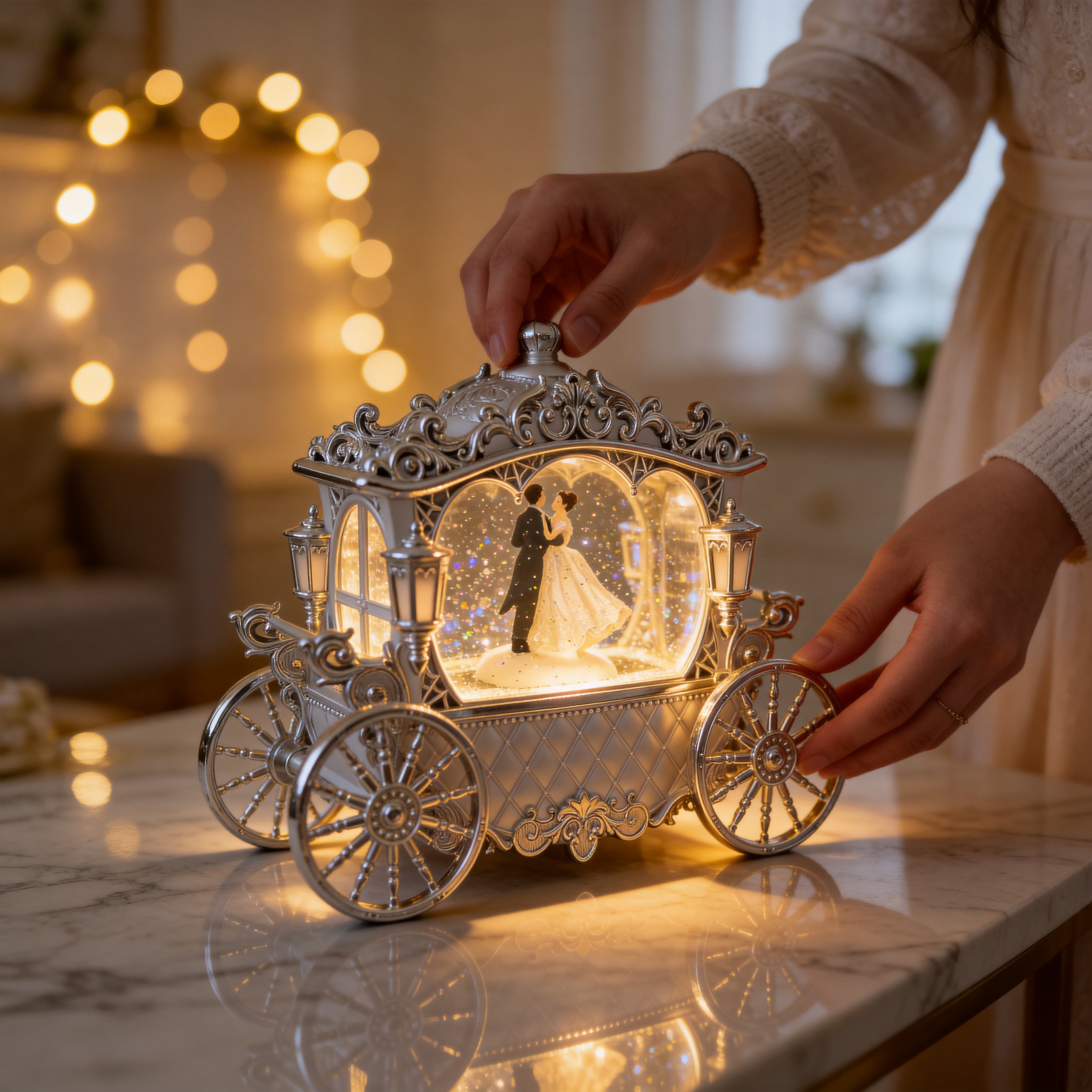 Swirling Glitter Effect – Automatic sparkling glitter creates a dreamy snow globe feel