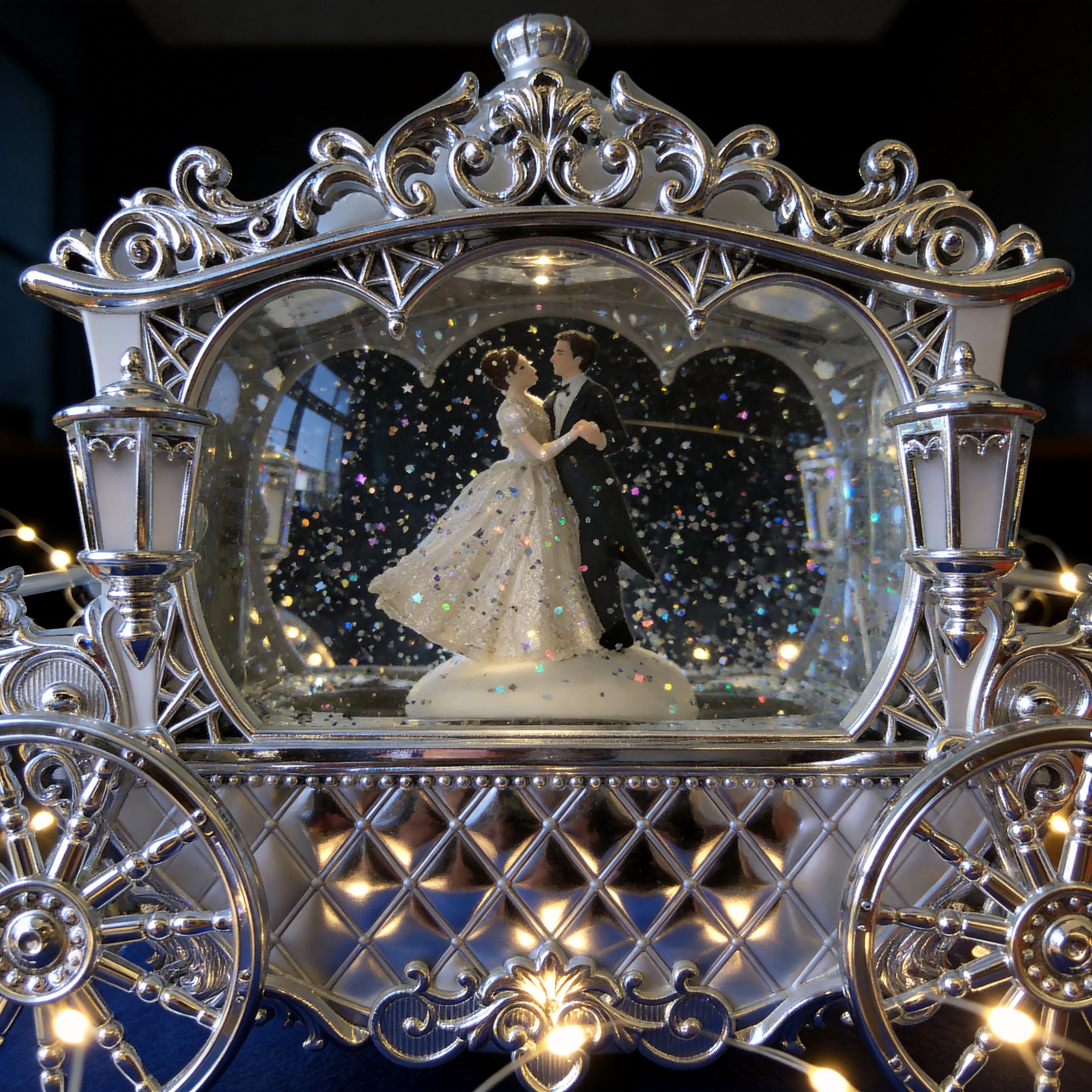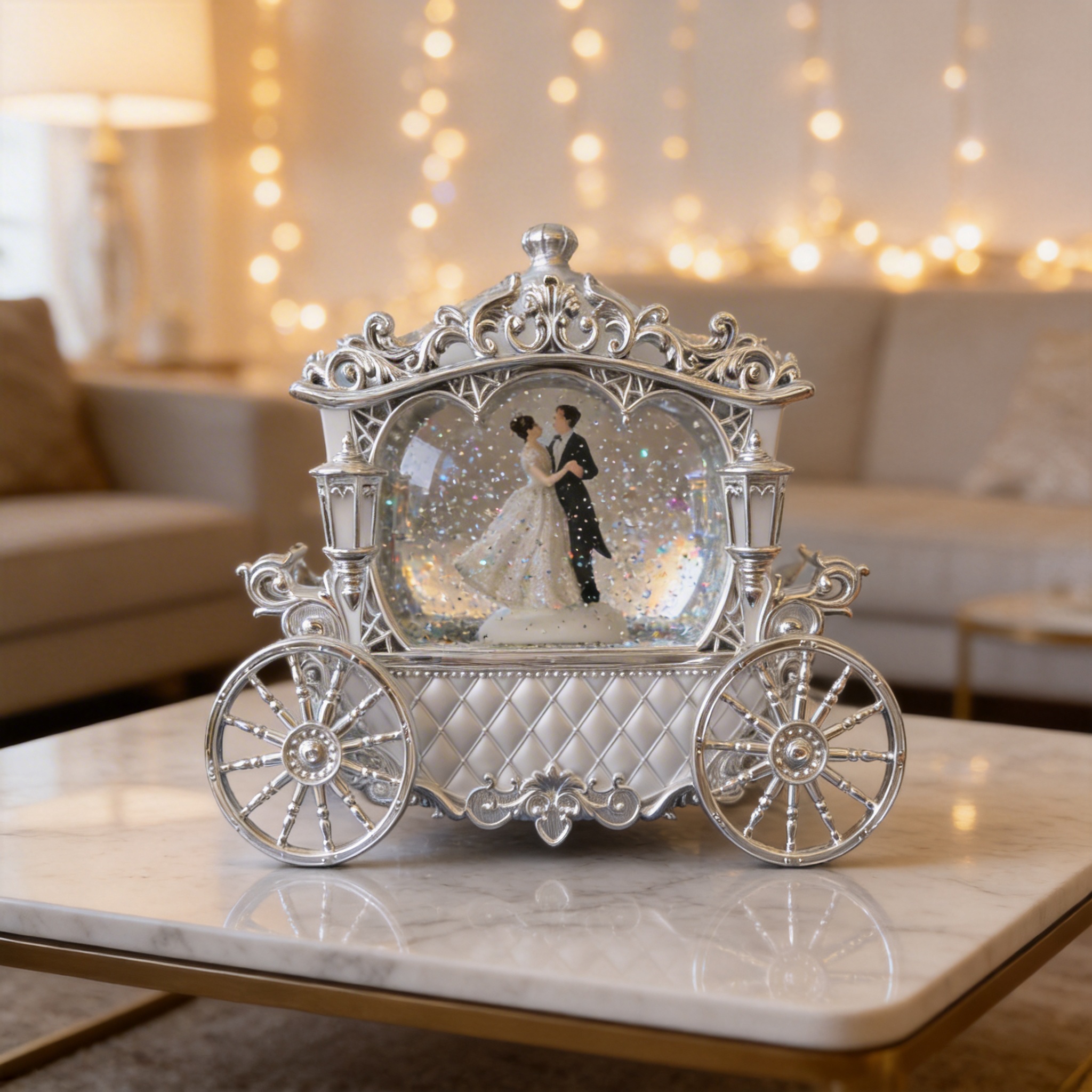 Luxury Vintage Style – Detailed silver carriage frame with premium craftsmanship