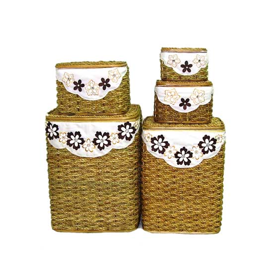 The displayed rope storage boxes come in different sizes to meet your needs. Each sophisticated box features embroidered cotton appliques for a delicate touch. This attractive storage box set is a practical addition to your home.