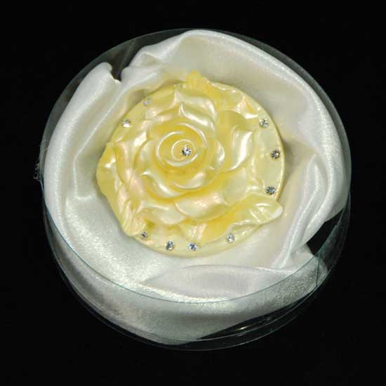 With a beautiful design, the featured brooch is perfect for decorating your jackets. It features a rose with petals decorated by glimmering stones. The brooch is made with exquisite craftsmanship.