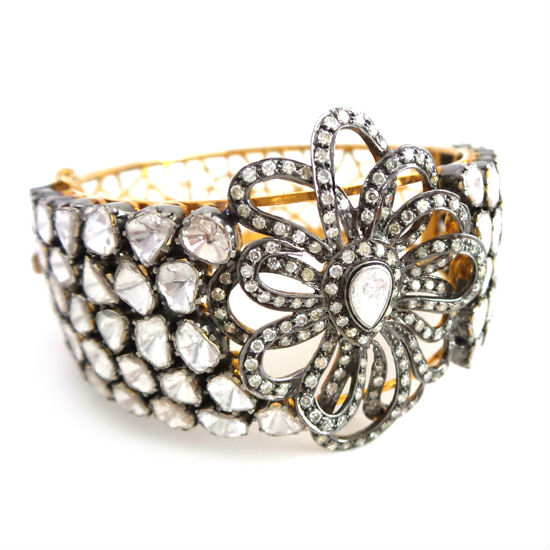 • Rose cut diamond bangle, setted witrh silver and 14K gold.