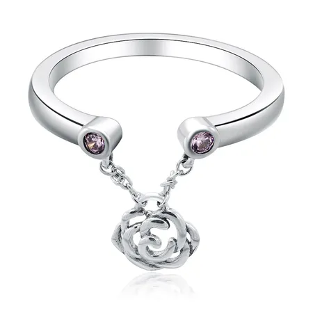 Perfect for casual wear, this sterling silver Dangle Rose Silver Plated Ring also delivers high-style for special occasions too. This flower blossom inspired design blooms with an elegant beauty that makes the perfect finishing touch for any outfit.