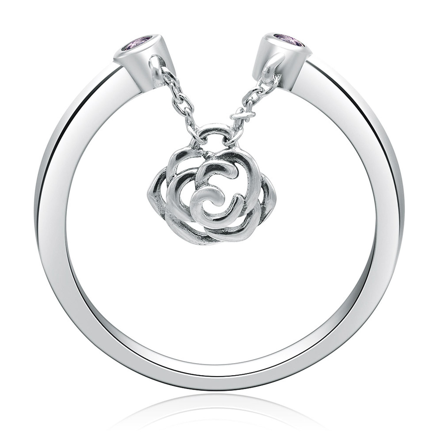 Perfect for casual wear, this sterling silver Dangle Rose Silver Plated Ring also delivers high-style for special occasions too. This flower blossom inspired design blooms with an elegant beauty that makes the perfect finishing touch for any outfit.