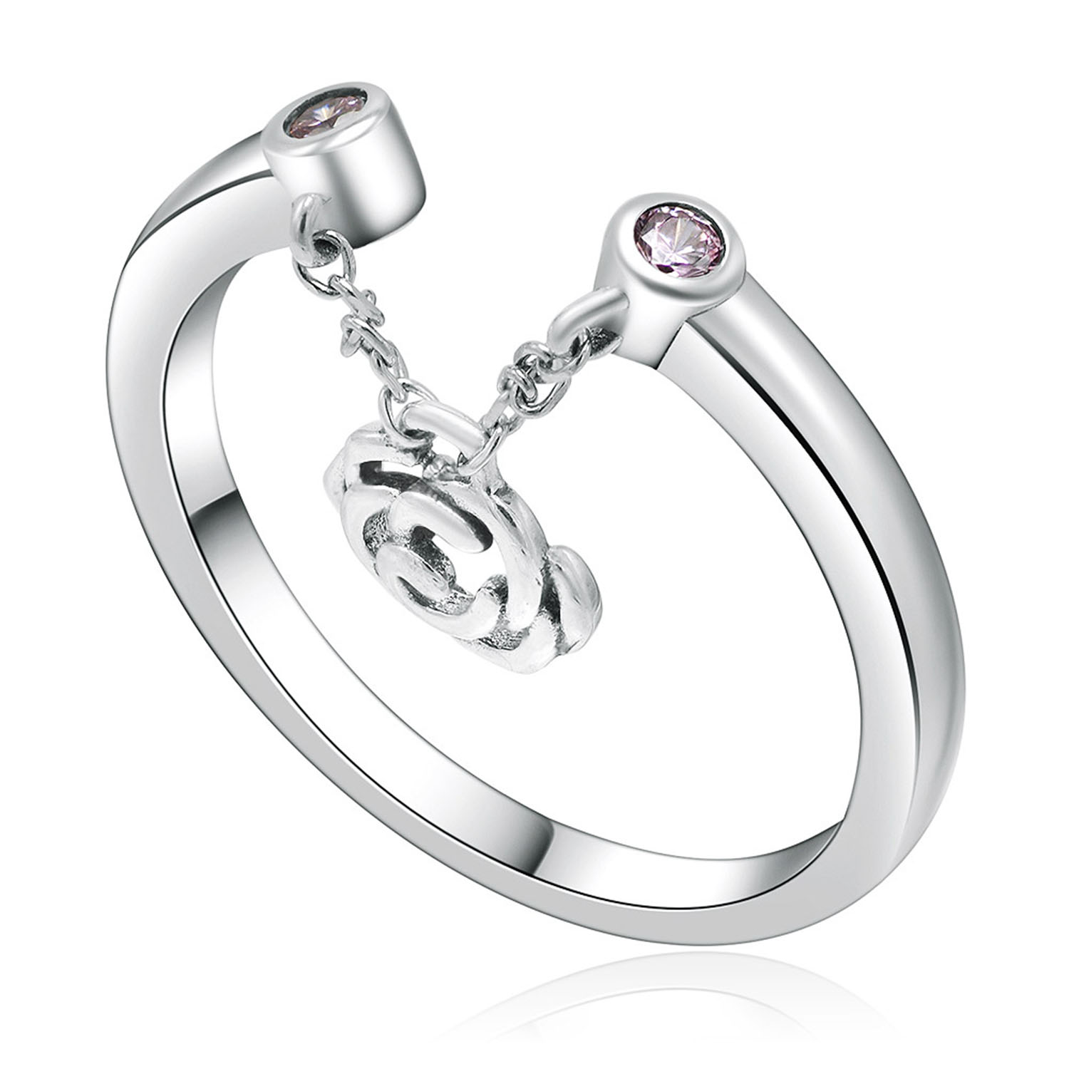#Floral Design Ring #Dangle CZ Ring #Pink CZ Jewelry
