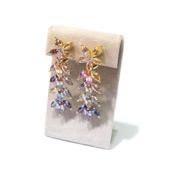 This is a pair of earrings that is finely crafted with exquisite details. The allover fancy sapphire gemstones are well set on the 18K rose gold setting. The charming floral appearance highlights this pair of earrings.
