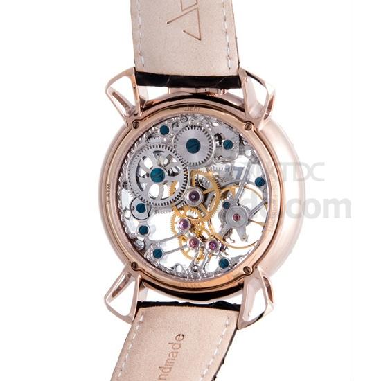 This breathtaking watch presents a sparkling and time-honored design with its round fluted case inlaid with 17 pallet gems. Powered by a hand-wound mechanical movement, the analog dial shows the gears and components in a crystal clear manner. Completed with a fish scale-patterned genuine leather band, this pocket-meets-wristwatch elevates your look with great class.
