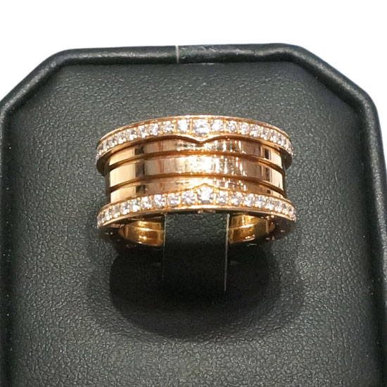 This rose gold ring is truly majestic with its wide design. It is nicely decorated with channel-set white stones for a touch of glamor. This spectacular ring appeals to both gentlemen and ladies.