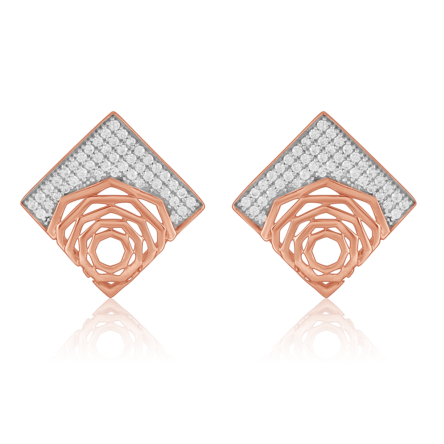 These beautiful earrings are one part of a 3 piece pendant set from our "Ornate" collection. They can be made in a metal of your choice, using your preferred diamond quality.