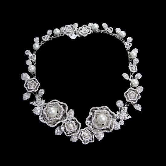 This is a necklace that boasts an elegant rose design. It is exquisitely crafted with high-quality CZ elements with a vivid and realistic rose appearance. The shiny pearls makes this necklace look more exquisite and chic.