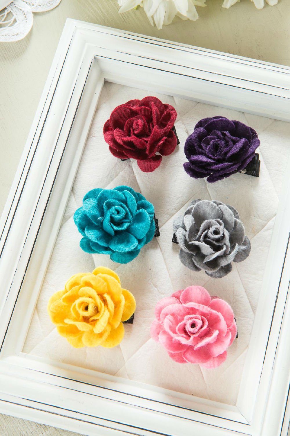 Bring a refreshing look by pinning this handmade hair clip. The blossoming flower is finely made of paper paddle and its layering petals add a rich volume to the entire piece. To guarantee a comfy all-day wearing, the metal double prong clip is fully covered by ribbon. This gorgeous piece is perfect for any baby/ girl.