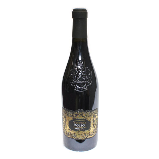 This is a bottle of Rosso Salento IGT from Italy. Made from a melange of Primitivo, Negroamaro and Malvasia, this red wine is complex yet balanced, with a pleasant mouthfeel. This high quality table wine is medium dry.