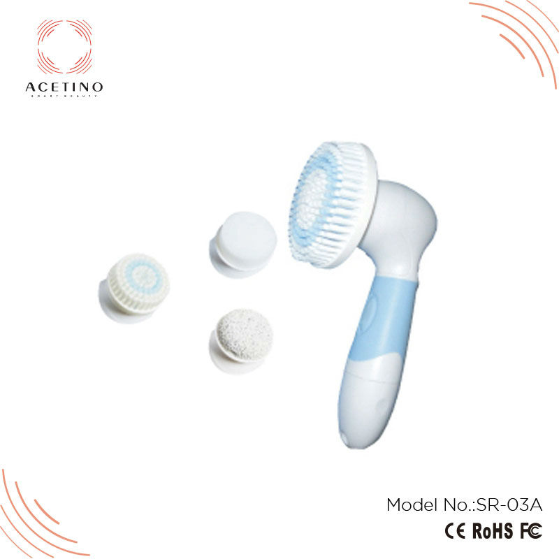 6. Compact and portable design, 4 applicators selectable: a) Big brush: Exfoliates and clean hand skin and body skin b) Face brush: Exfoliates and clean face skin c) Pumice: Polish and remove rough callus skin under foot or elbow d) Sponge: Moisture face skin